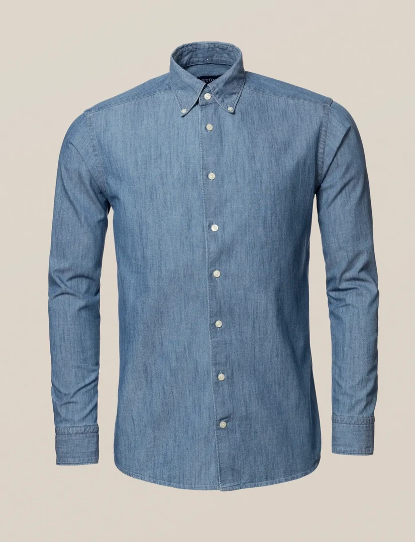 Eton Off The Water Garment Washed Light Blue Denim Shirt
