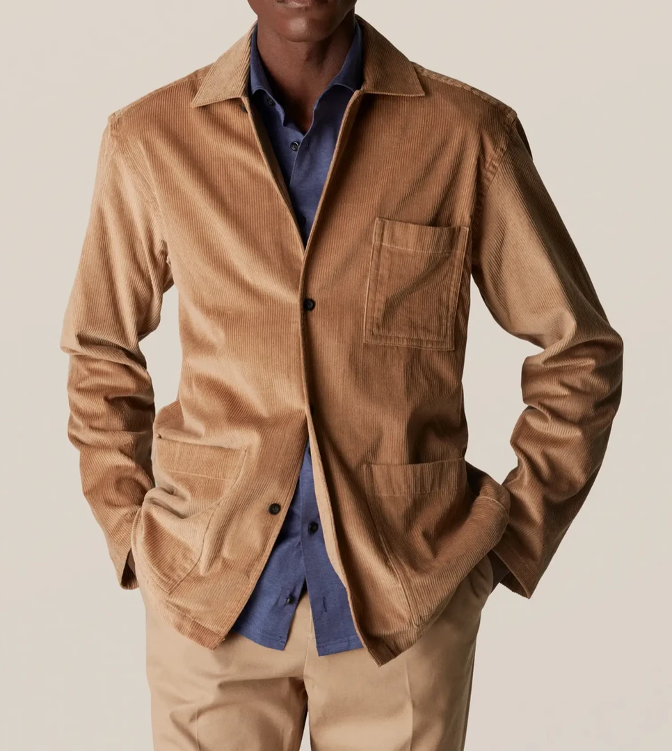 As elegant as corduroy gets, this is the new dressed but effortless shirt-jacket. Rich and lustrous, the Eton version of the famous ribbed fabric was created in collaboration with a leading corduroy specialist in Italy. The workwear-inspired overshirt comes with a promise of becoming your new favourite smart-yet-relaxed jacket. Perfect for when the chilly weather sets in. Please note: To achieve this beautiful color, this style may come with some initial excess dye. Color transfer may occur. Wash separately, and avoid contact with lighter fabrics until laundry has removed excess dye.