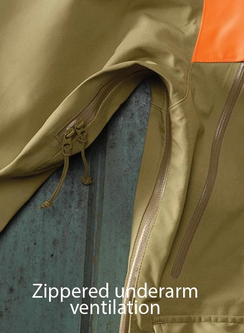 Our toughest, most technical waterproof hunting jacket—in ToughShell—is a first in upland performance. It combines superior protection in cold, wet, windy weather with the durability bird hunters demand. The innovative hard shell fabric is waterproof and windproof, while the breathable two-layer system allows moisture to escape during strenuous activity. Every hunter, no matter the region, will appreciate the protection from the elements, as well as from thorns and briars. Though lightweight, ToughShell fabric is puncture- and tear-resistant, defying the thickest cover. Mechanical stretch fabric on the main body and articulated elbows offers optimal mobility and a comfortable fit. Reinforced with highly abrasion-resistant fabric on lower back sleeve, front, and back yoke. Watertight underarm zipper for ventilation. Soft, brushed tricot interior for a warm feel. Features include traditional styling, waterproof zippers, a clean design to accommodate a vest, generous pockets with magnetic closures, zippered handwarmer pockets underneath shell pockets, and an adjustable hood. The hidden, extremely low-profile game bag is designed to lay flat when not needed, such as when wearing a vest, but can expand for those hunts when you need to carry harvested game. 240 sq. in. of blaze orange. Nylon. Washable. Imported.