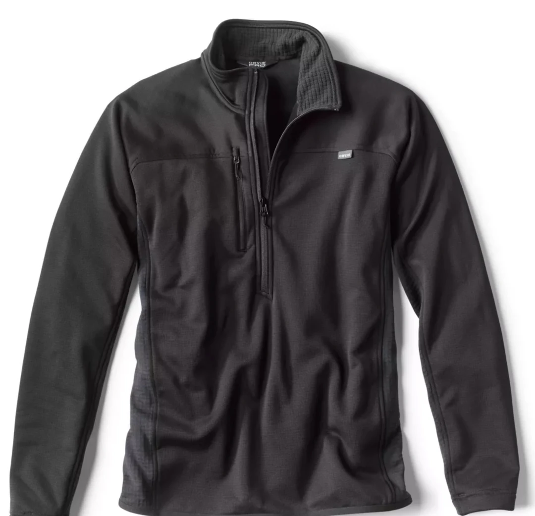 This Men’s PRO Half-Zip Fleece pullover comes from our line of Orvis PRO fishing apparel, the most technologically advanced outerwear we’ve ever built. Using a combination of technical fabrication and action-specific design, Orvis PRO apparel takes on the elements and provides the protection necessary in even the harshest environs. Using the most advanced Polartec® fleece fabrics, Orvis PRO Half-Zip Men’s Fleece uses body mapping to create focused function for optimal movement, moisture wicking, and temperature control. Polartec® PowerStretch® Hardface® coating in body and arms provides superior abrasion resistance without sacrificing stretch. Polartec® Power Grid fleece side panels manage heat and moisture to keep you warm and dry through any activity. Center-front half zip allows you to regulate core temperature, YKK® zip chest pocket for small accessories, and articulated fabric patterning improves comfort and mobility when casting. Athletic fit which is excellent for layering. Polyester/spandex. Washable. Imported.