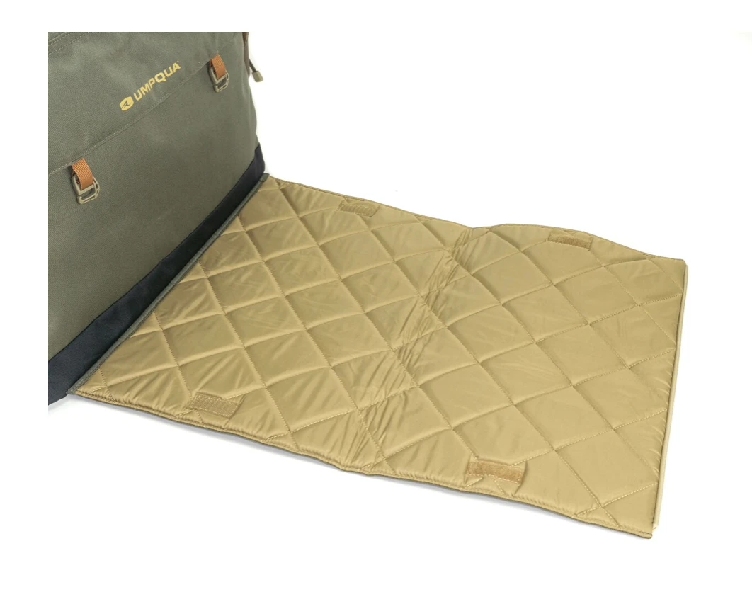 – A full-sized 22″ x 16″ fold-out quilted/padded stand-station while gearing up